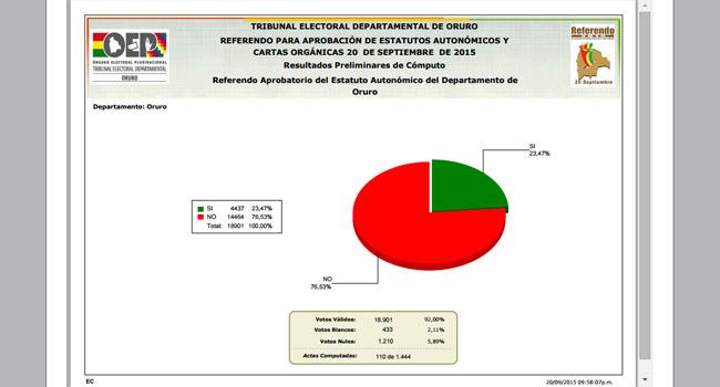 Resultados del Referendo aprobatoria del estatuto autonómico de Oruro: gana el No con el 76,53%